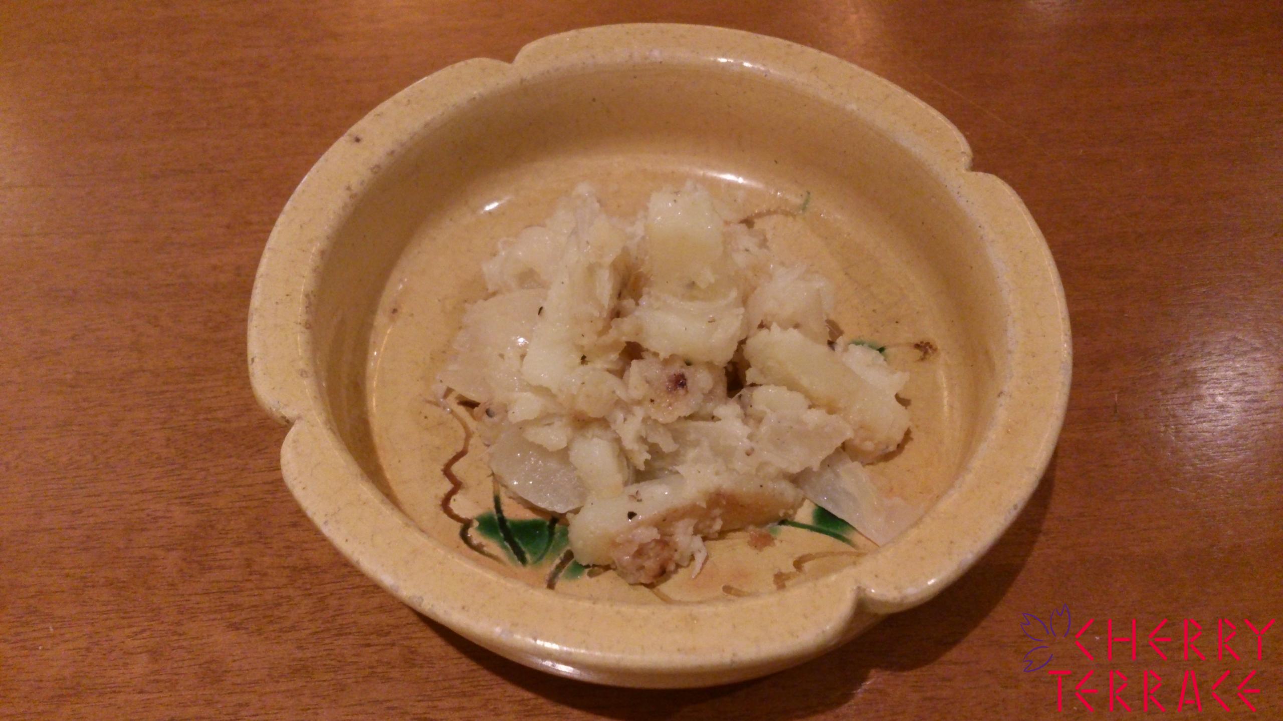 • 1のじゃがいもに串がすっと通るくらいになったら、鍋からあげ、皮をむき細かく刻む。