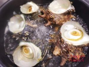 - 肝の味をラウデミオに移すため、③に②のサザエの肝だけ入れて炒める。