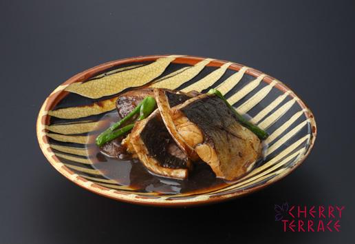 - 最後に絞りしょうが汁を加え、器に盛りつけ、残った煮汁をもう一度煮詰め、濃口しょうゆでお加減して艶よく注ぎかける。