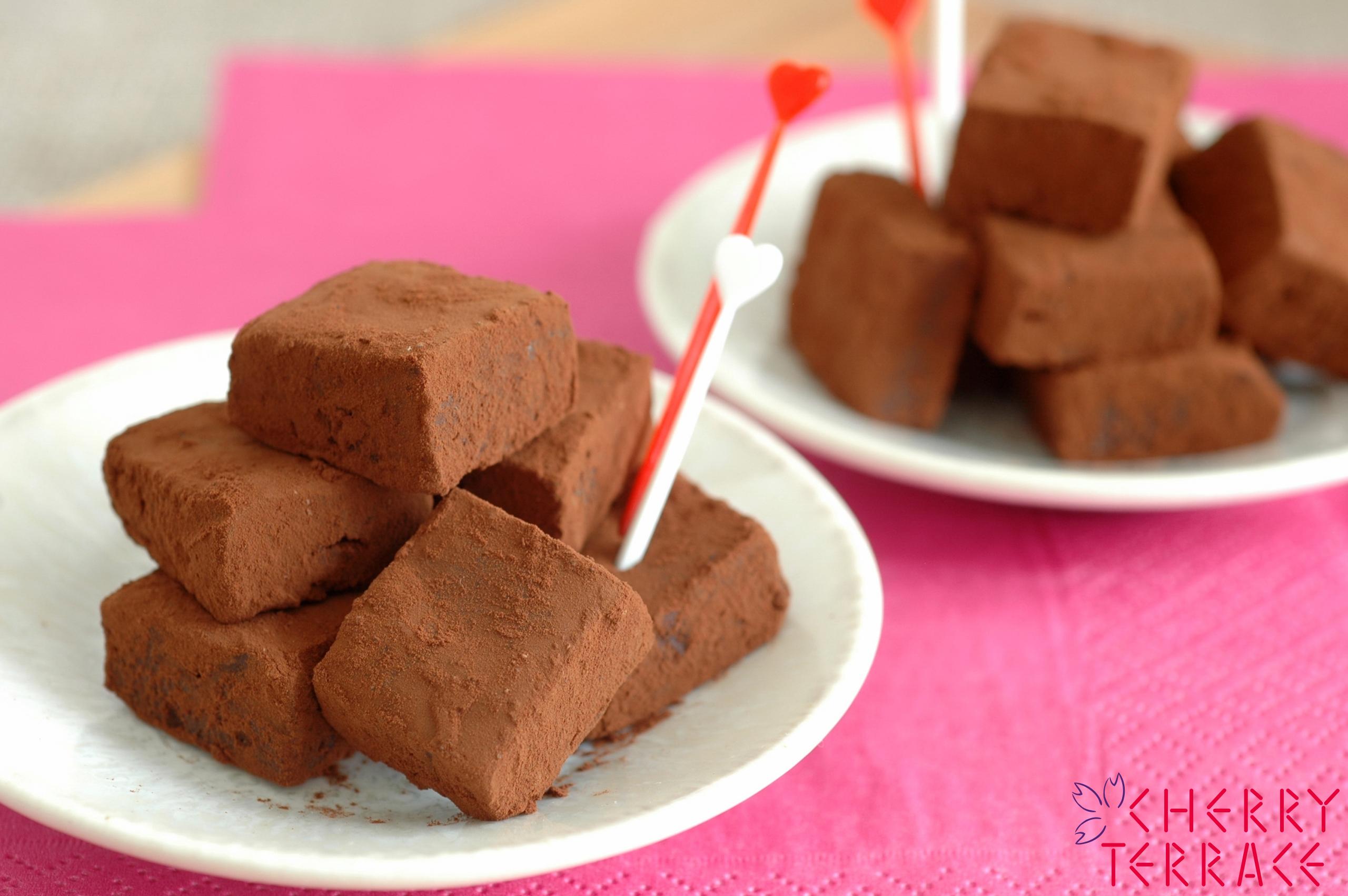材料(型(15cm×15cm)、2cm角の生チョコ約40個分)