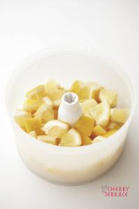 - レモンはヘタと種をとり、2cm位の角切りにする。