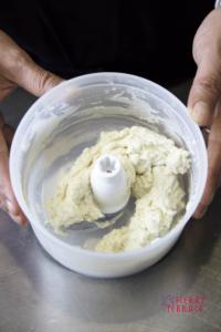 • 1に水、砂糖、塩を加えてスライシーで切り混ぜる。※グルテンが出ないようできるだけ手早く、5回スイッチをオンオフするぐらいでよいでしょう。