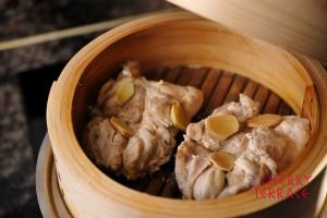 - 鶏肉に酒、塩をふり、しょうがをのせて蒸す。※蒸気の上がった蒸し器に鶏肉を入れ、10分〜12、13分様子を見ながら蒸す。
