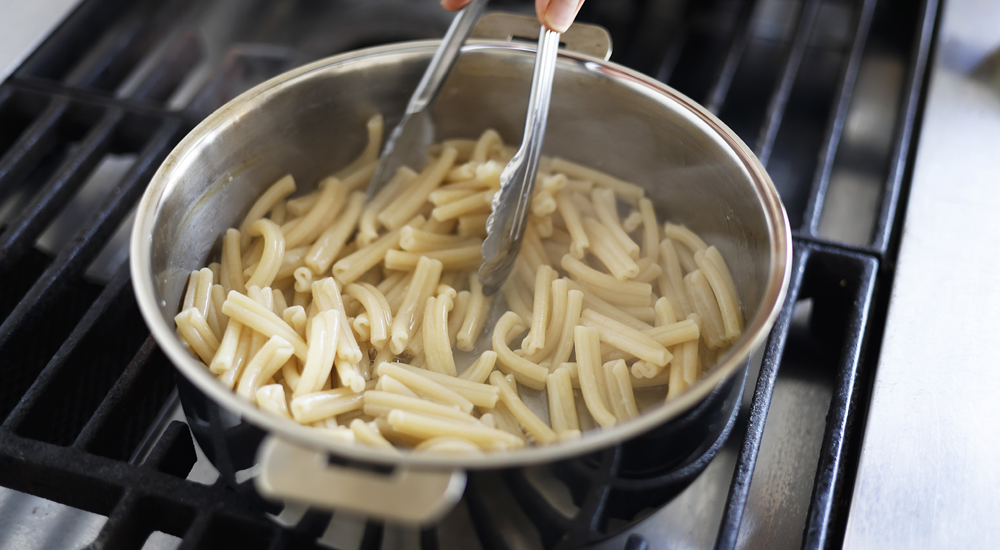 パスタといえば、まずはたっぷりのお湯を沸かし、塩を入れ、というのがセオリーですが、このパスタ・ティレーナは、お湯の量を変えて2つの茹で方を試していただきたいと思います。