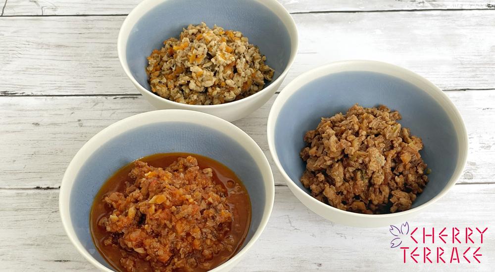 鶏肉、野菜と粉だしを合わせた和風鶏そぼろは、