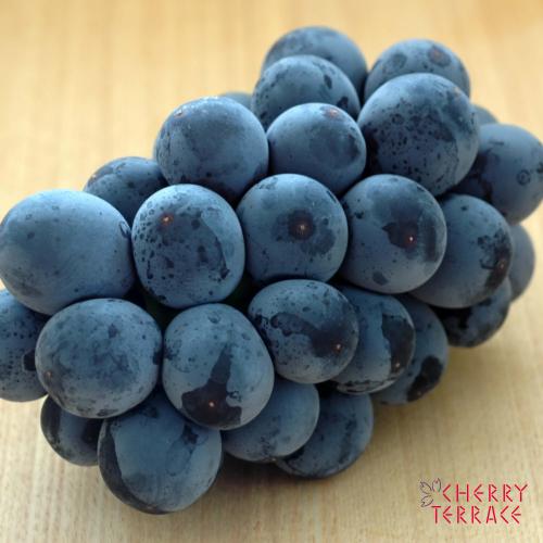 ●ピオーネ 生食用。日本で育成された巨峰の改良品種。巨峰によく似ているが、房も粒も巨峰より大きい。果粒は黒紫色で短楕円形。果肉は緑色で締まり肉質はよい。甘みは巨峰より強く、酸味は少なく、多汁。軽いフォクシー香がある。巨峰同様に日持ちは悪いが、巨峰より粒が落ちにくい。ジベレリン処理による種なし化が可能になった。主産地は岡山県、山梨県、広島県。早生種で、成熟期は8月下旬〜9月上旬。