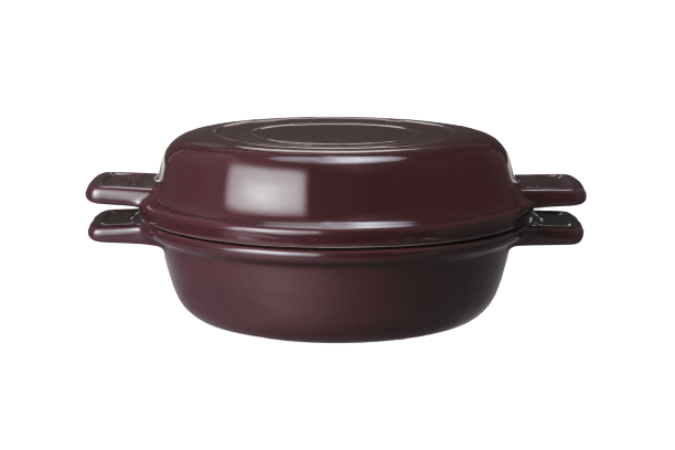 土鍋感覚で使えるチェリーテラス・オリジナルの耐熱ストーンウェア製鍋(フランス製)。浅鍋、深鍋の2枚セットで、用途に応じて適切な方を鍋として(もう一方を蓋として)使うことができます。保温性・余熱効果が高く、多用途に活用できます。