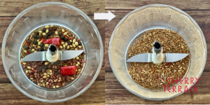 - スパイスをバーミックス(グラインダー)で粉砕する。