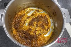 - 1の深鍋を弱火で加熱する。香りが立ってきたら、植物油と2のペーストを加え、焦がさないよう混ぜながら加熱する。香りが立ち、一度混ざった油が浮いてきたら完成。*そのままカレーを一倍量作る時は半量を取り出し冷凍保存も可能。